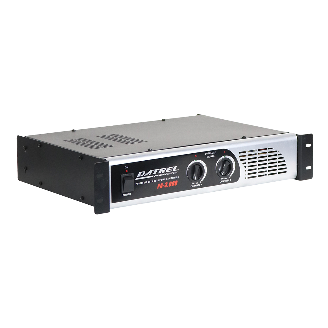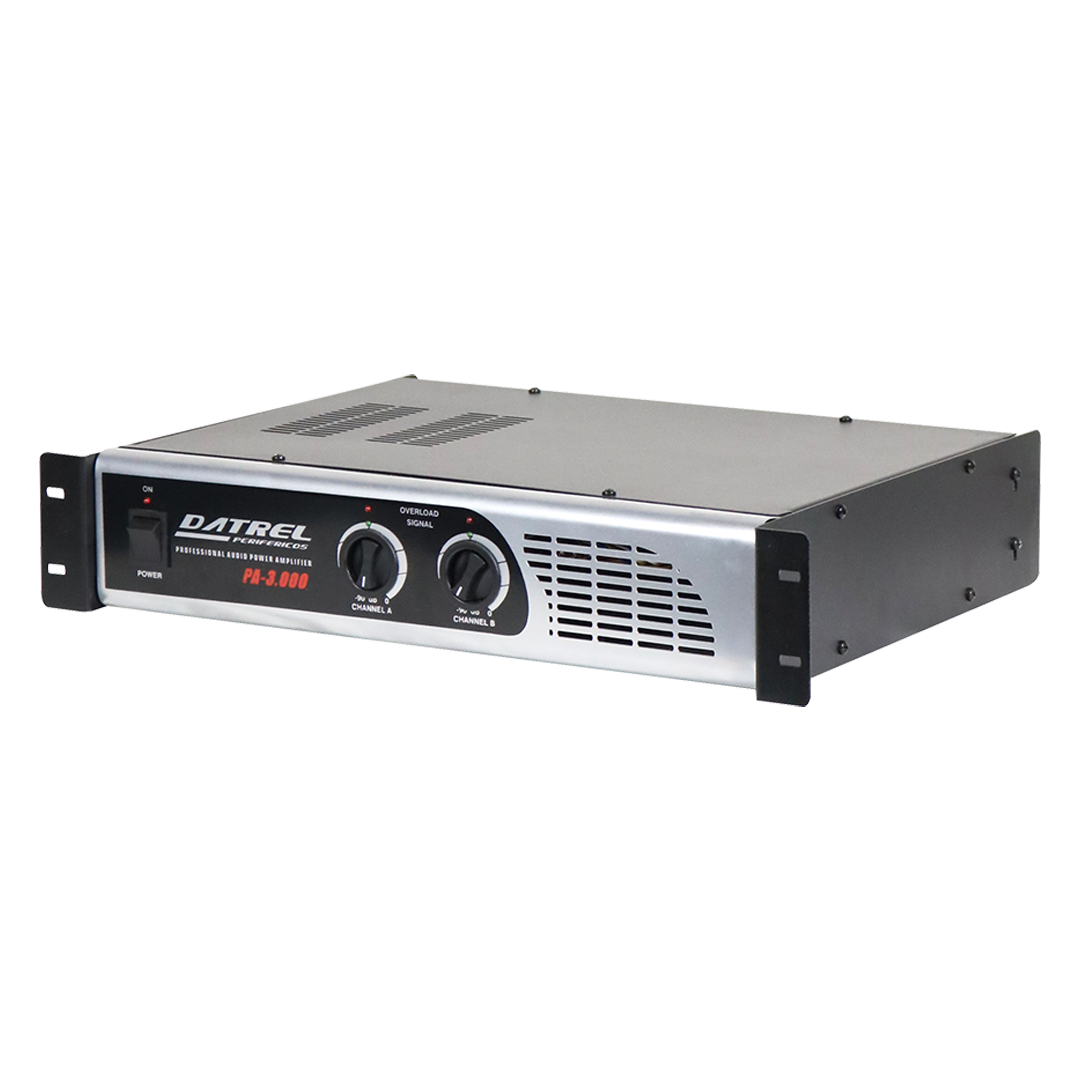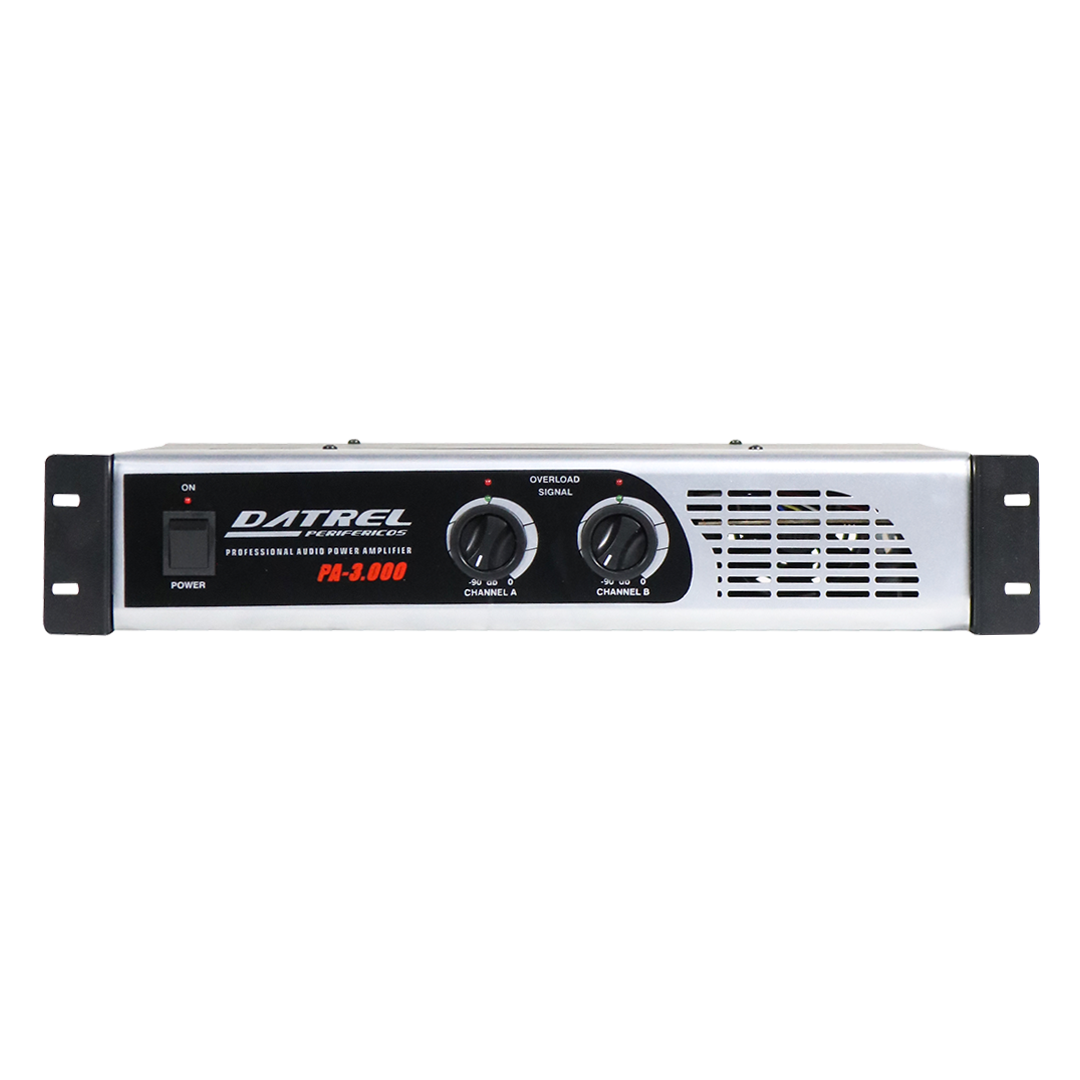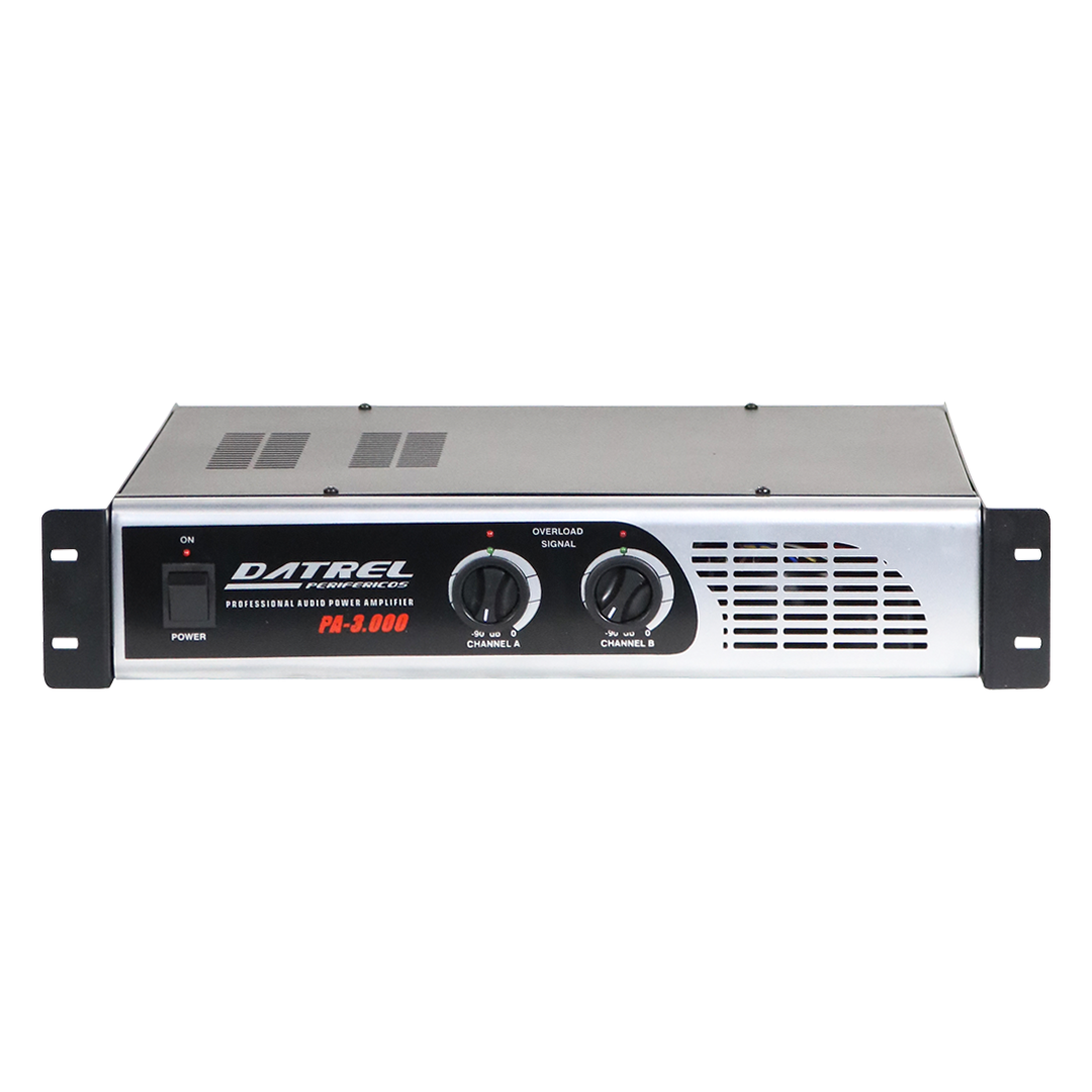 O Amplificador de Potência PA-3.000 DATREL conta com 400W de potência, sendo amplamente usado em sistemas de som profissionais com aplicações nas mais diversas áreas, com resposta de frequência FULL RANGE excelente opção para eventos como festas em geral, igrejas, palestras, convenções, casa de shows, DJS, auditórios e projetos de sonorização de pequeno, médio e grande porte onde se exige qualidade e desempenho por longas horas graças ao seu sistema de ventilação forçada.