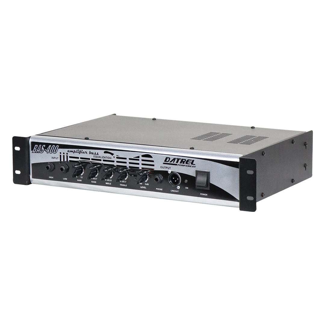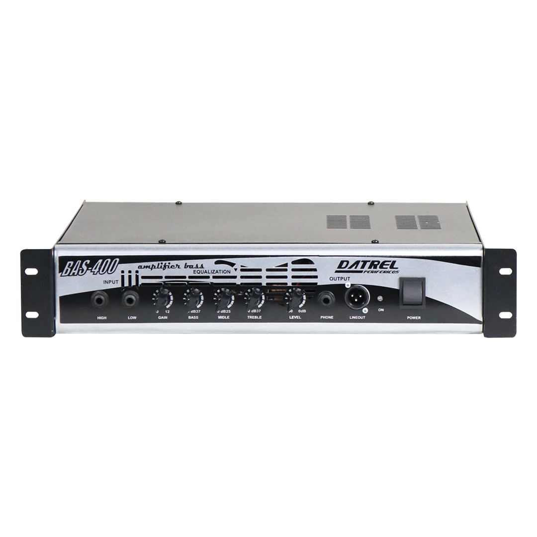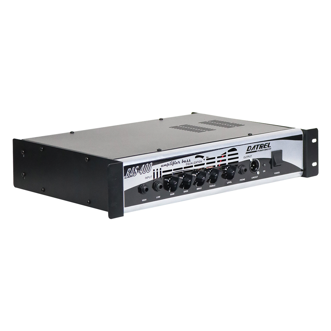 O amplificador BAS 400 tem potência de 400 watts RMS em 4 Ohms e é equipado com um pré-amplificador de 3 bandas para ajustar o som de acordo com as preferências do usuário. Ele também tem um loop de efeitos e uma saída de linha equilibrada para conexão com mesas de som ou gravação.